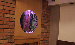 Ugrađen u zid, ovaj akvarijum dizajnom podseća na pozorsko okno podmornice Nautilus, i uklapa se u ambijent celog kafea koji nosi to ime.